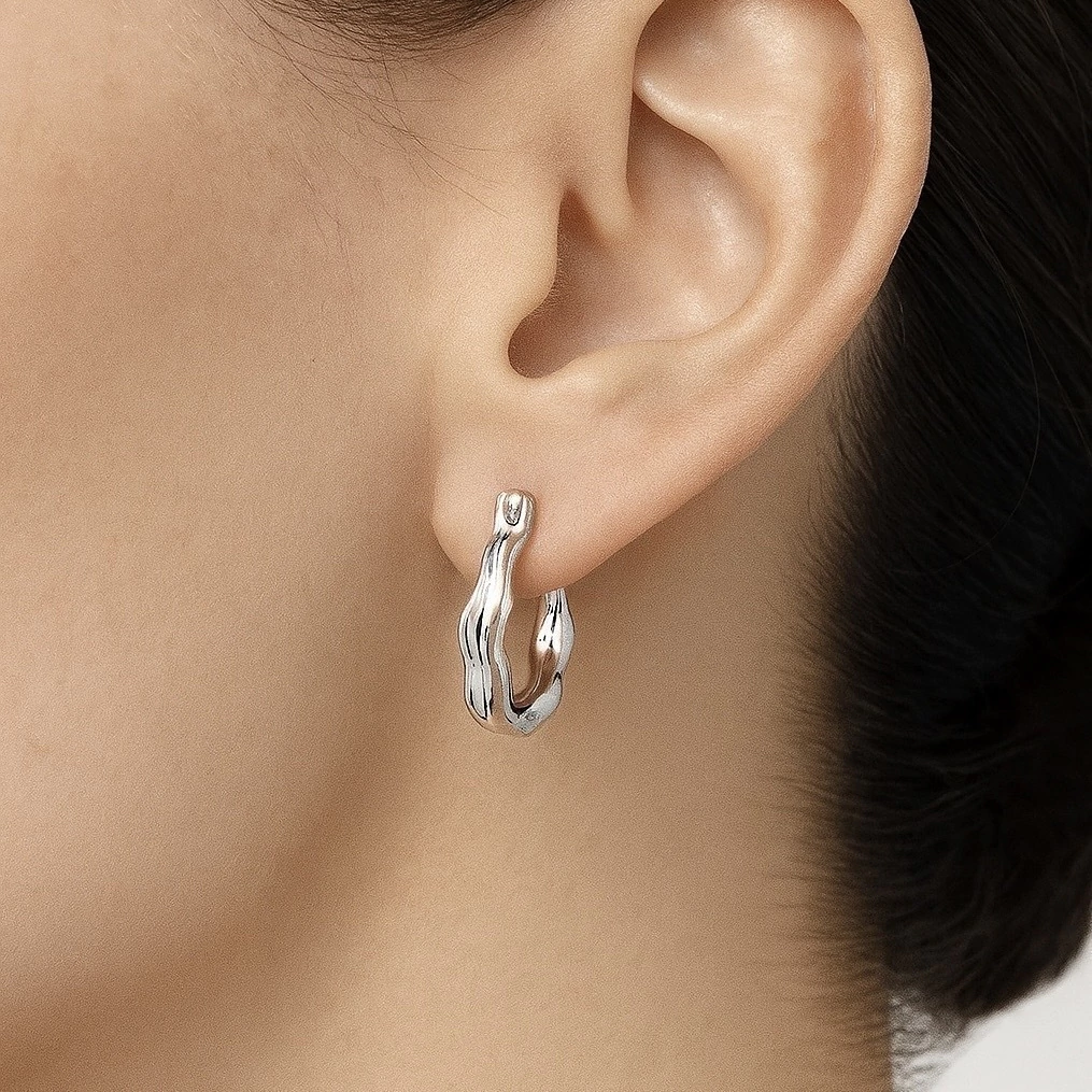 Los Aros Argolla Organic · BS Edition forman parte de la cápsula exclusiva creada junto a Barbie Simons, inspirada en piezas modernas con formas naturales y un brillo sofisticado. Su silueta orgánica e irregular, inspirada en curvas fluidas, aporta un estilo contemporáneo y distintivo, alejándose de las argollas clásicas para ofrecer un diseño auténtico y con carácter.