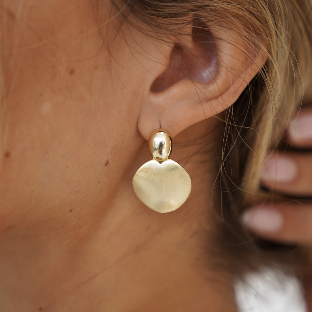 Los Aros Texture Glow · BS Edition redefinen la elegancia contemporánea con un diseño lleno de carácter y brillo. Confeccionados en aleación de metales de alta calidad y chapados en oro 14K, presentan una textura sutil y sofisticada que aporta profundidad y luz en cada movimiento.