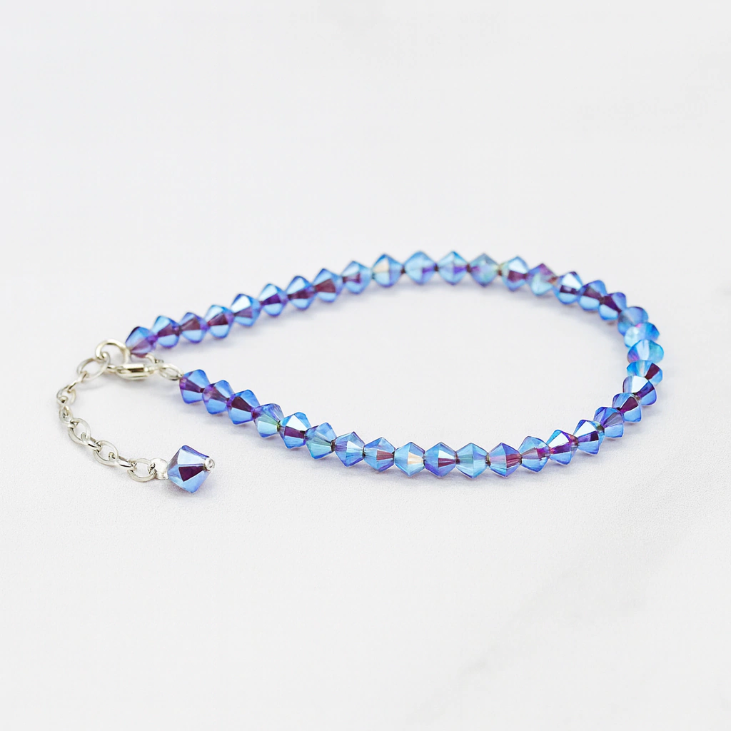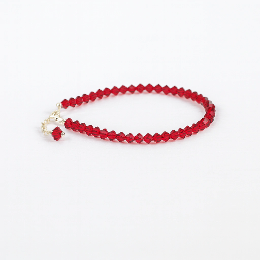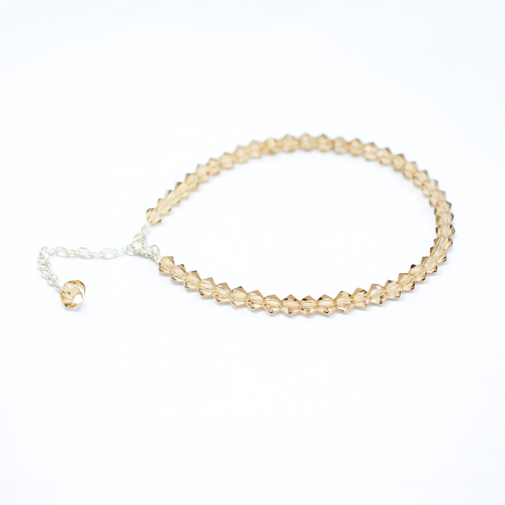 Descubre la elegancia atemporal de nuestra pulsera creada con cristales auténticos de Austria de 4 mm. Este accesorio exquisito, con un largo de 16 cm más una extensión de 3 cm, se adapta a tu muñeca con la perfección que te mereces.