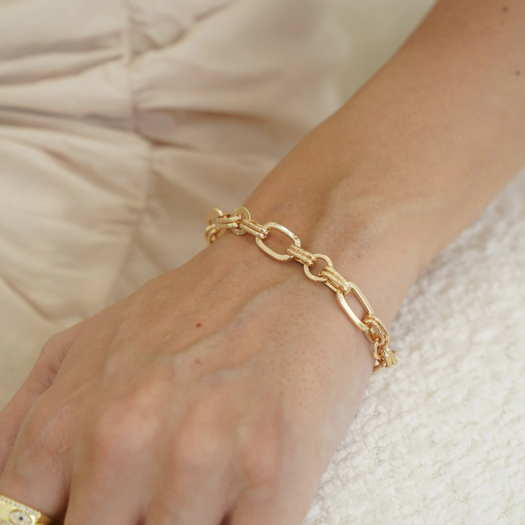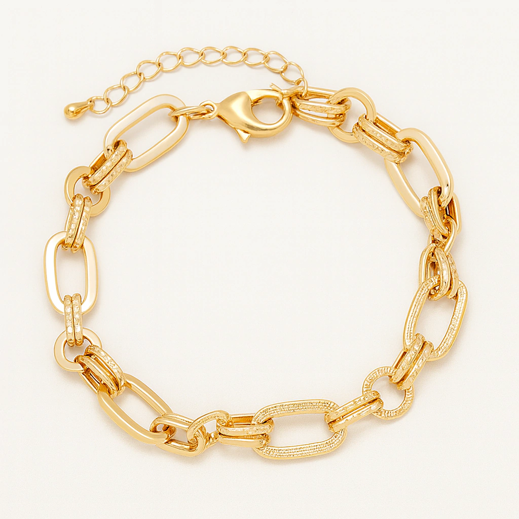Una pieza versátil y moderna que combina elegancia con estilo urbano. Su diseño de eslabones entrelazados crea un efecto visual sofisticado, ideal para elevar cualquier look, desde el más casual hasta el más refinado.